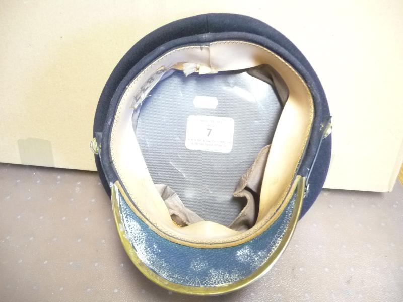 Stiff peaked cap with patterned cap band bearing brass badge of the WELSH GUARDS. Size7. grade 8+