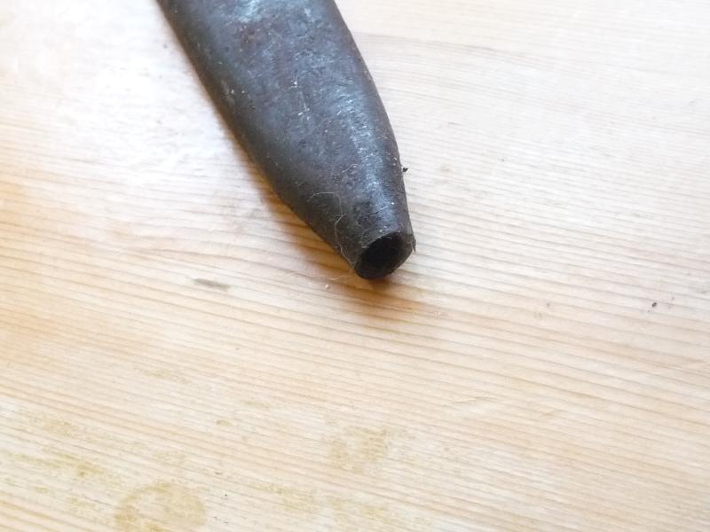 Steel scabbard for a mauser bayonet POSSIBLY AN EXPORT M1949 OR SIMILAR ( see photos). Blued finish with rust speckles. Tip missing 26 cms Grade 7