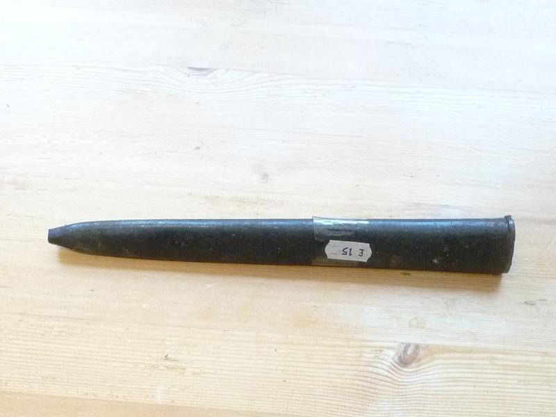 Steel scabbard for a mauser bayonet POSSIBLY AN EXPORT M1949 OR SIMILAR ( see photos). Blued finish with rust speckles. Tip missing 26 cms Grade 7
