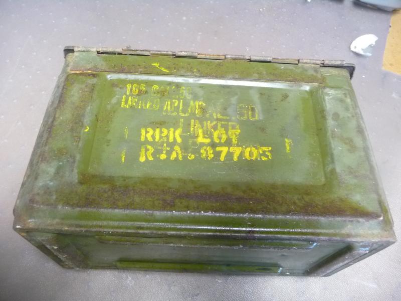 Steel tin with original OD painted exterior and hinged lid with flat handle. Some markings (a little worn but visible) and a few rusty areas in the joints. NO perforations.- see photos Grade 8